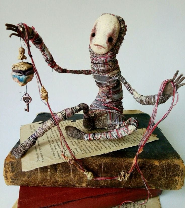 Dark, eerie, and gothic elements are prevalent, including figures in decay, haunting environments, and mysterious creatures.